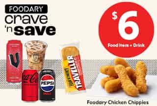 ^04/02/26 – 03/03/26. Offer available at participating Ampol Foodary stores. Participating food items include Four ‘N Twenty Traveller Pie 160g range, Foodary Private Label Chicken Range. Participating drinks include V 500mL range, Coca-Cola 375mL range, Solo 375mL range, Pepsi 375mL range and Foodary Iced Coffee. Must be purchased in the same transaction. Not in conjunction with any other offer. Product availability and range may vary by store. While stocks last.