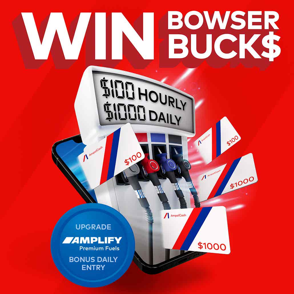 Spend $20 or more on any fuel for your chance to win $100 every hour PLUS go in the draw to win $1000 daily in AmpolCash! For a bonus entry into the daily draw, fill up with Amplify Premium Fuels.