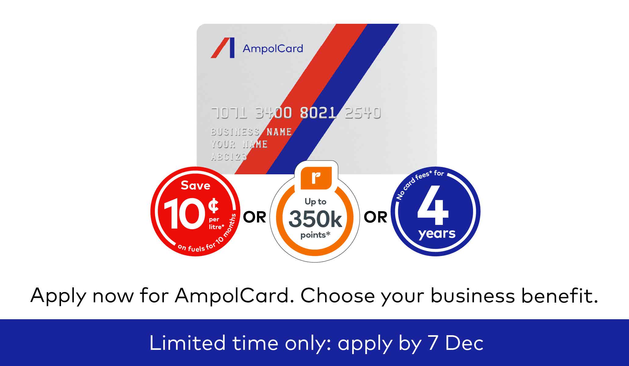 2. Apply for AmpolCard by 7 Dec with your chosen promo code and get approved for your business fuel card